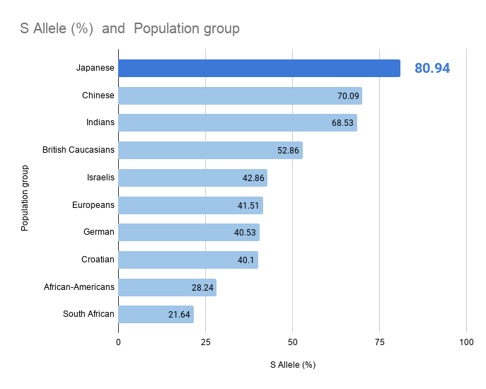 If you look at the graph above, you can see that the proportion of Japanese S gene is high in the data examined. It is well understood that the Japanese are genetically the world’s top class and easy to feel uneasy.